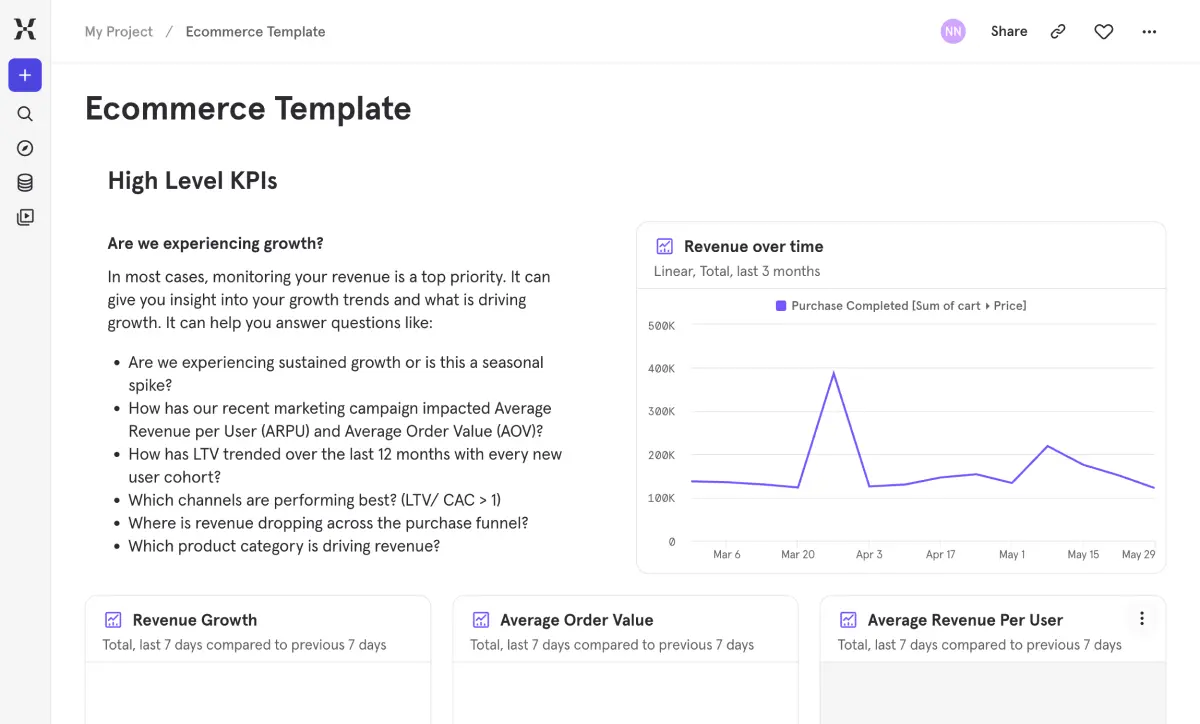 Templates are pre-built dashboards designed around a specific use case or industry. Instead of starting from a blank canvas, you start with a proven framework built on industry best practices that you can adapt to your needs.